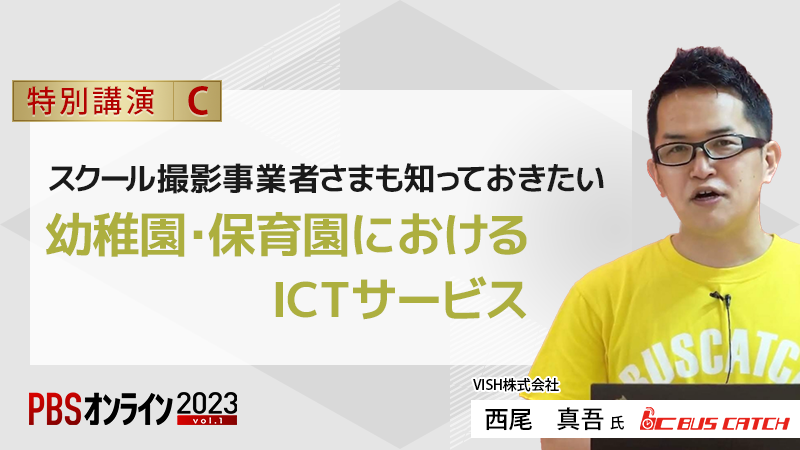 幼保における課題をどのようなアプローチで解決できるのか?撮影事業者にどう関係するのか?「園支援システム+バスキャッチ」を運営するVISH(株)の西尾真吾氏を招いて皆様にご紹介します。