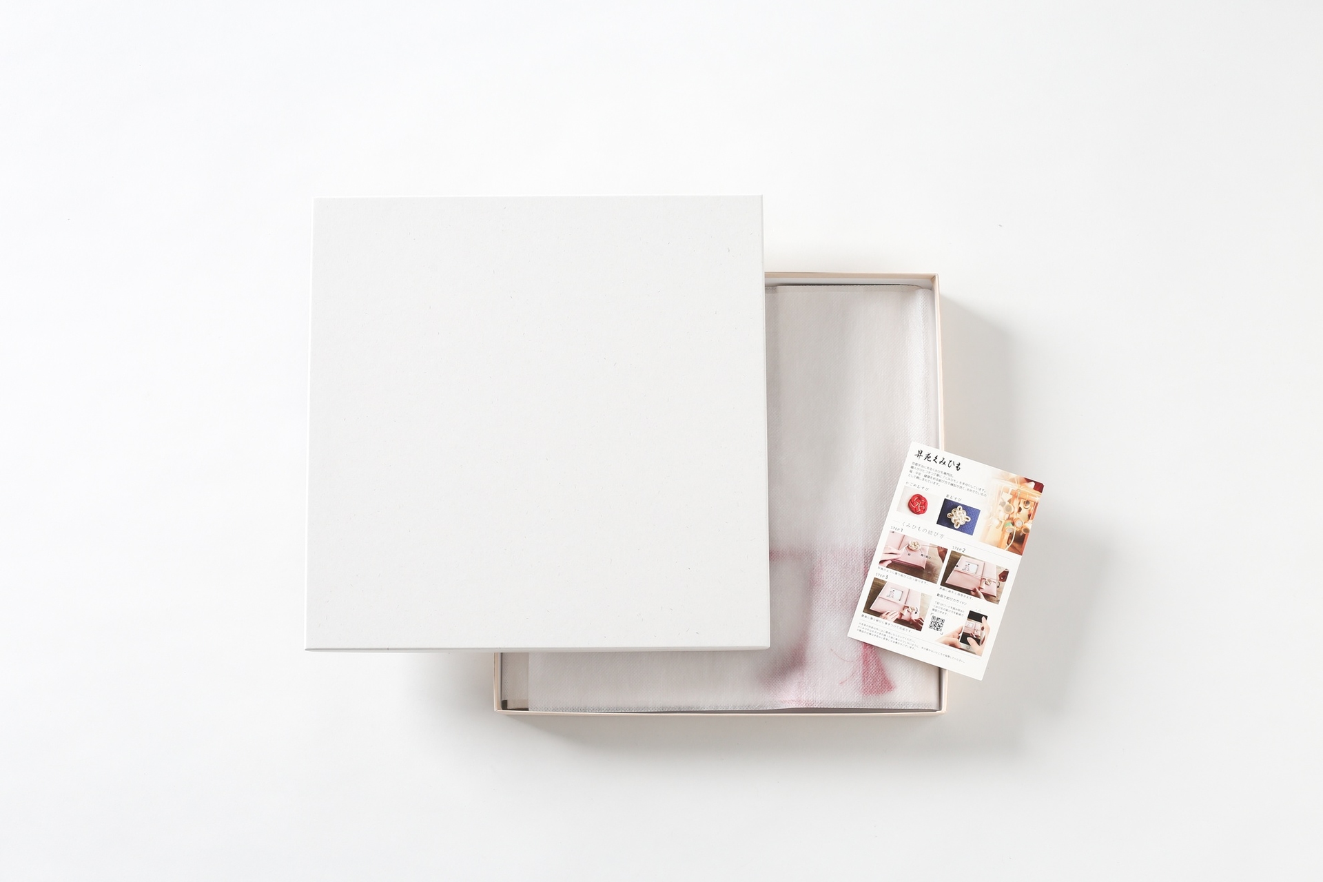 白い品のある専用化粧箱と、組紐の巻き方ガイド付きです
